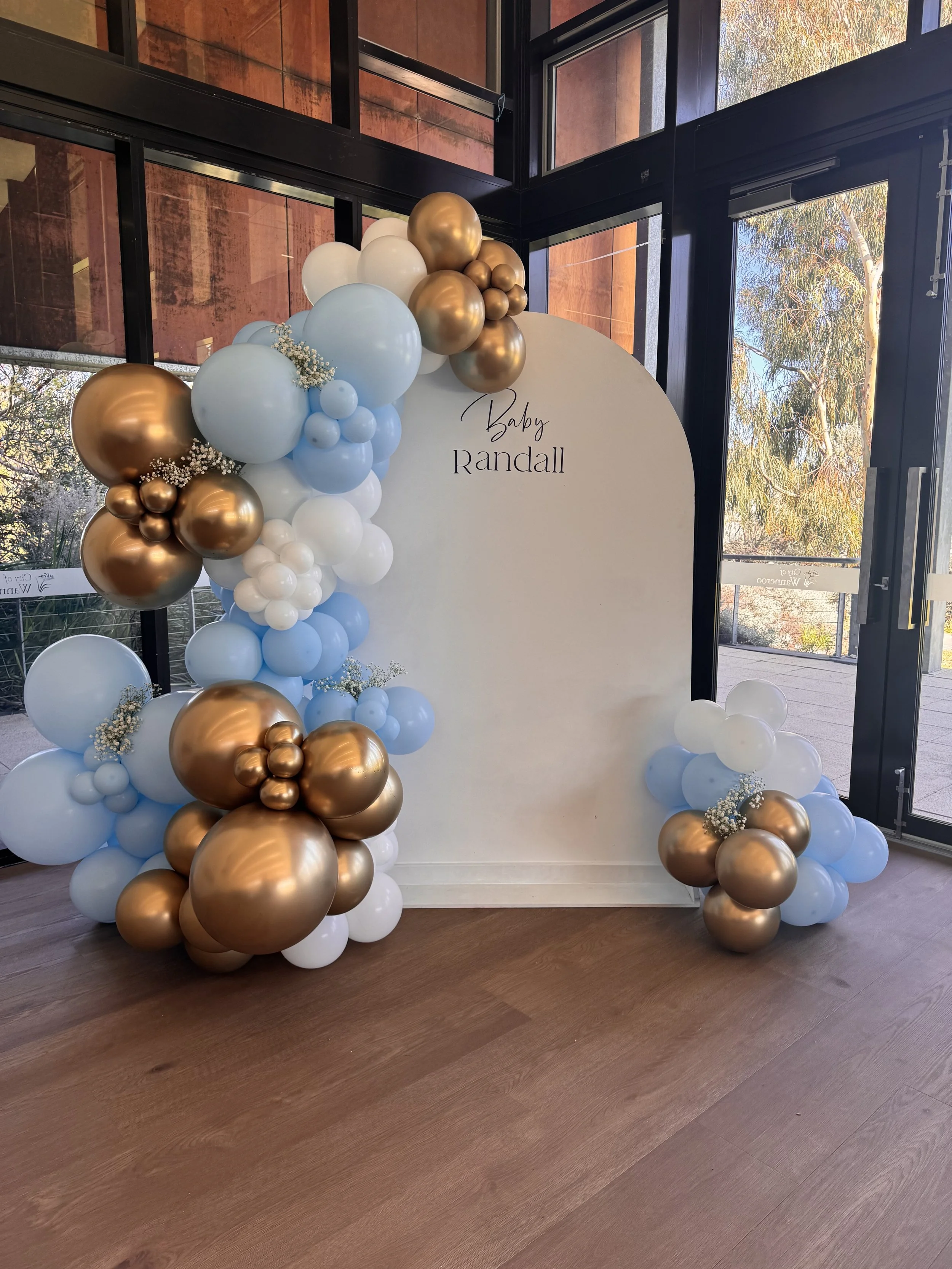 2m Arch + Signage + 3m Garland inc feature balloons, florals or ribbon bows